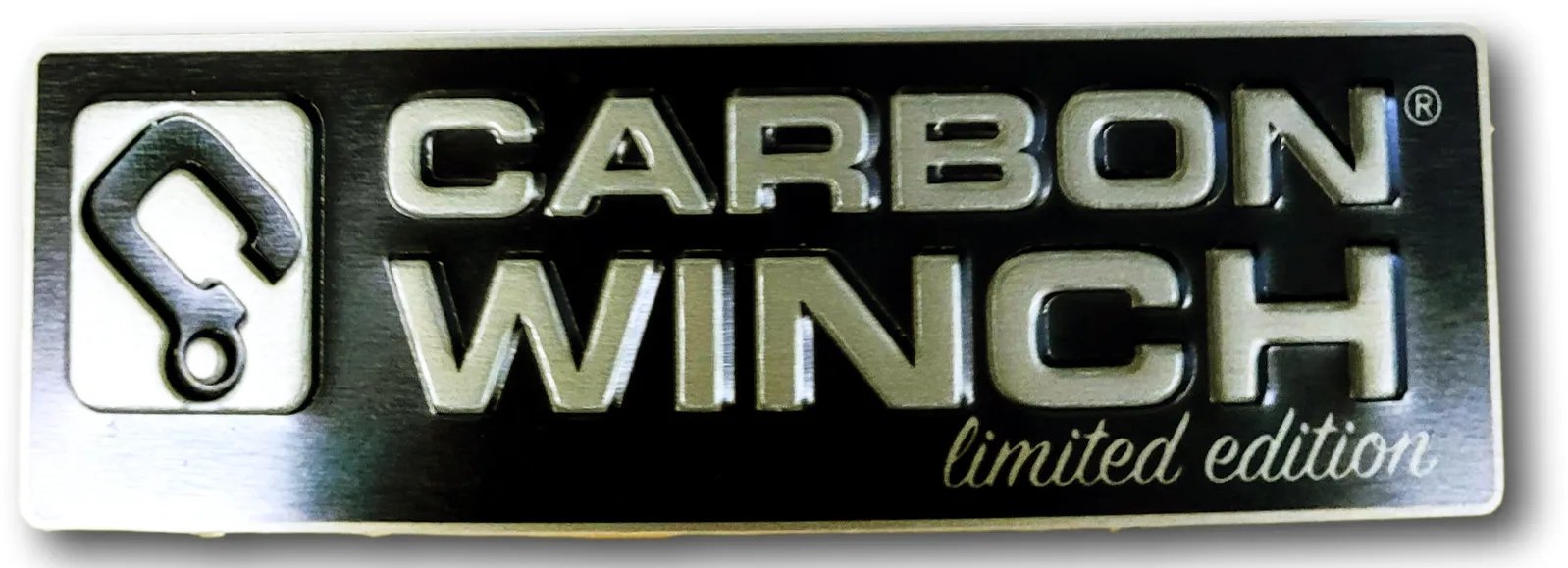 Carbon Offroad Sandy Taupe Metal Badge – Limited edition 100 × 33 mm metal badge, perfect for owners of the Sandy Taupe Carbon winch.